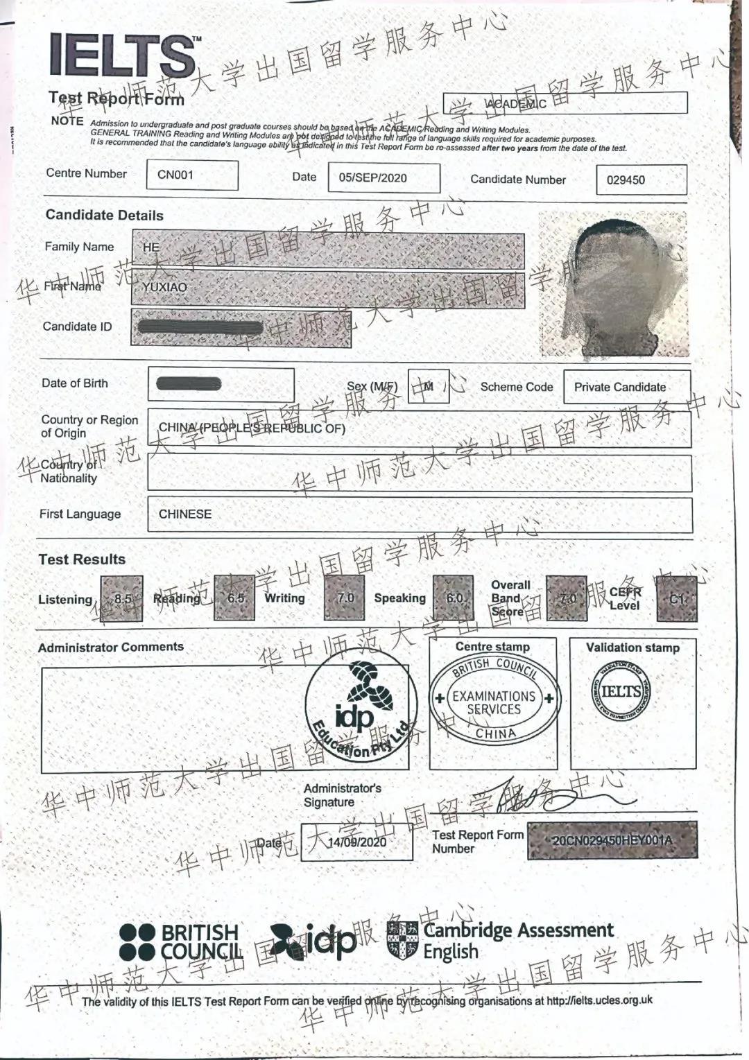 “课程结束后,我的雅思首考取得了6.5分的成绩。我是在大二下学期萌生出国留学的想法,并咨询了很多老师和学长学姐相关信息,但苦于本身英语不算优秀,一直在犹豫。大三,我看到了华师留服中心校内雅思班的开班消息,在和老师和家长的沟通后,我选择报名参加。我必须要为四科任课老师和助教老师点个赞,是老师们过硬的教学实力和耐心的讲解让我能在短期内英语能力有如此大的提高。Cosimo老师的写作课给我的写作储备提供了大量帮助,小作文的精确描述、大作文的逻辑梳理、句型短语的汇总,让我在写作部分有了极大的提升;Lily老师的口语课很有趣,她对于三个PART的讲解都很细致,注重分类教学和课上实战;Michael幽默风趣的上课风格让听力课很轻松,并且在他的讲解之下,我对于关键词的抓取有了明显的进步;在阅读板块,我听从老师的建议,每次练习都自行计时并总结题型解题方法和思路,提高速读能力。当然,我的提升也离不开助教老师每天的鼓励和打卡监督,同学们之间的相互促进。6.5分不是最终的目标分数,我计划刷一下分,以便于冲击更好的院校。”