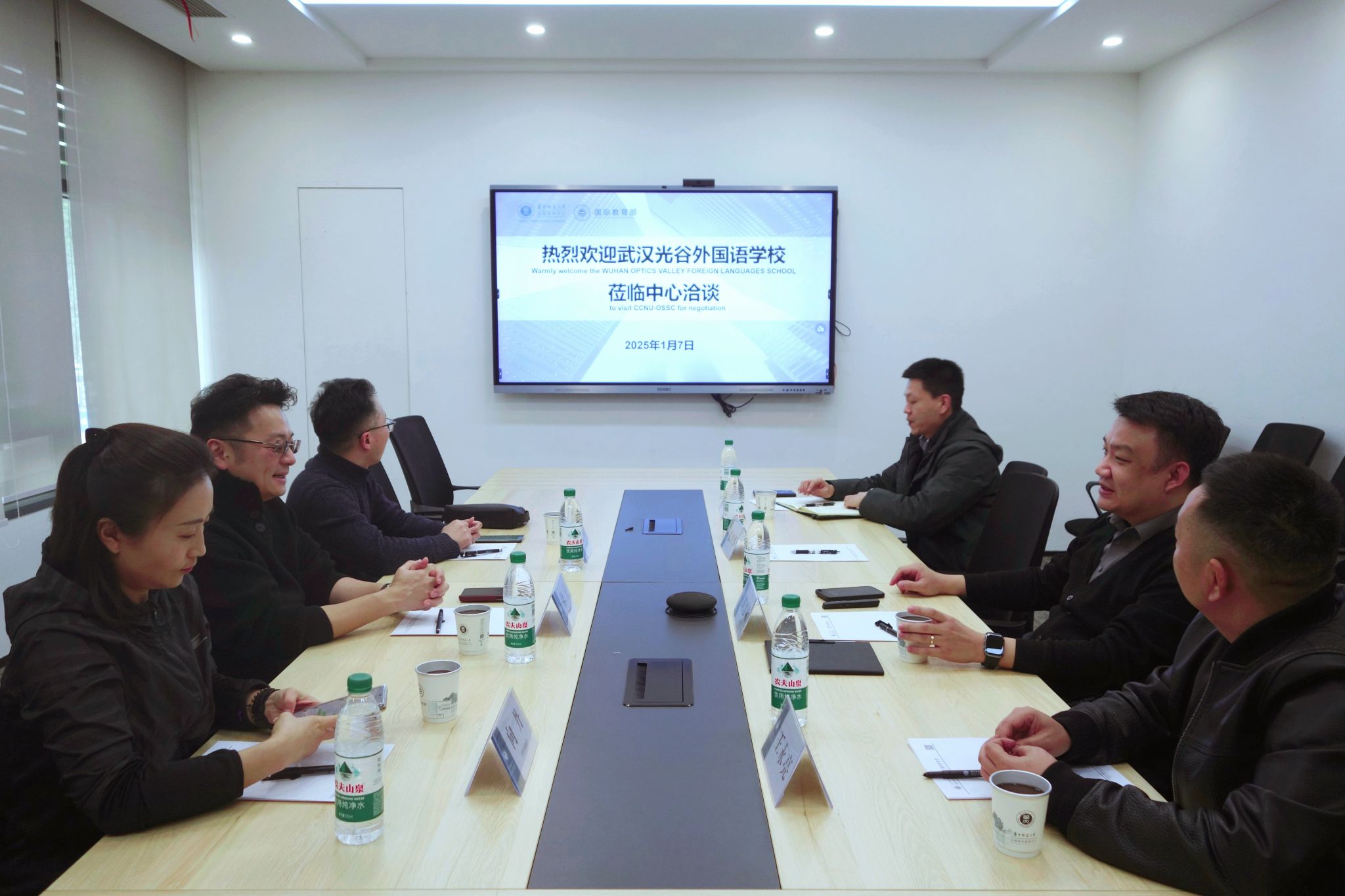 1月7日,武汉光谷外国语学校校长徐涛、副校长向丹、德育主任饶军到访我中心,胡慧洁主任在会议室会见来宾。双方洽谈深化合作,共谋教育新发展。