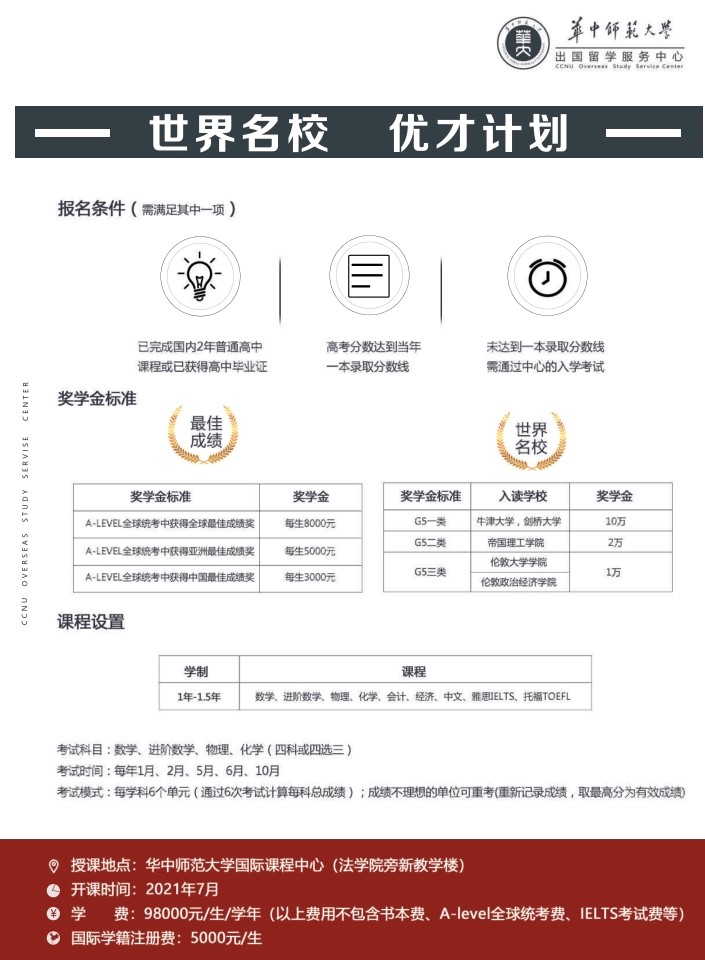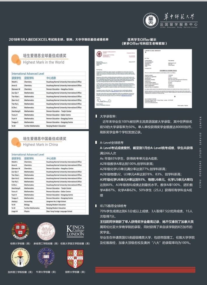 2010年由英国EDEXCEL(英国国家学历资格考试委员会)授权成为“华中师范大学EDEXCEL A-Level课程考试中心“(编号92920),负责EDEXCEL A-Level和GCSE课程的授课及考试