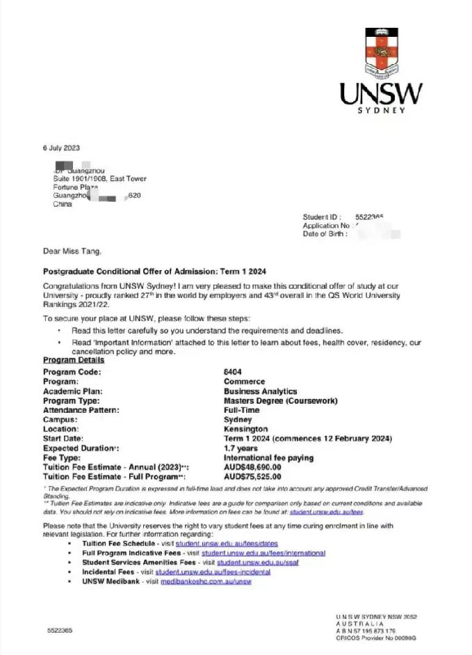 2024年1月-至今:新南威尔士大学(硕士)