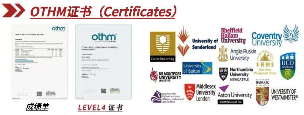 OTHM是一家非营利的学术组织、由英国教育部监管的证书颁发机构。总部位于英国,受英国资格和考试条例办公室(OFQUAL)监管。并获得威尔士资格认证署、英国边境管理局(UKBA)以及英联邦授予机构联合会(FAB) 合作与认可。OTHM官方机构开展课程、专业与师资认证,其拥有的全球认证体系,可在广泛的行业领域提供系统专业管理认证和执业资格认证。