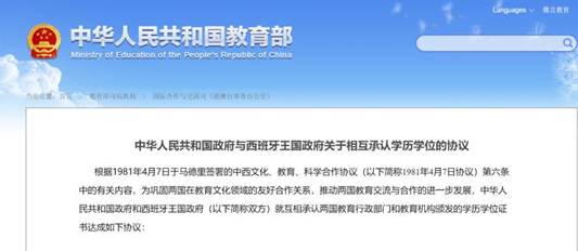 中华人民共和国教育部教育涉外监管信息网www.jsj.edu.cn,公布了中国认可的西班牙高等学校名单。西班牙学历全球认可,国际通行含金量高。