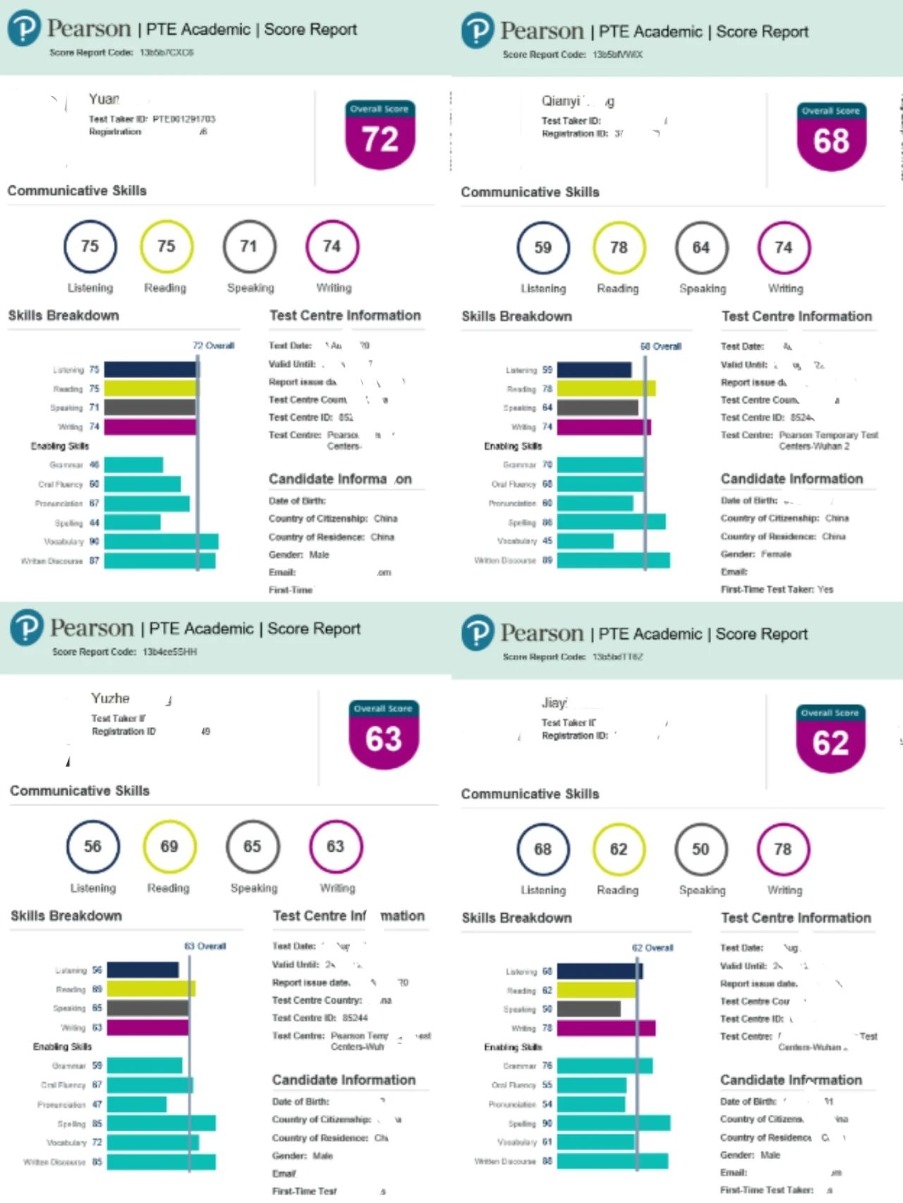 在22天的PTE强化密集课程里,他们通过老师系统专业的教学,以及自己的勤奋努力,取得了理想的语言成绩。他们在用行动和努力去实现世界名校梦想。