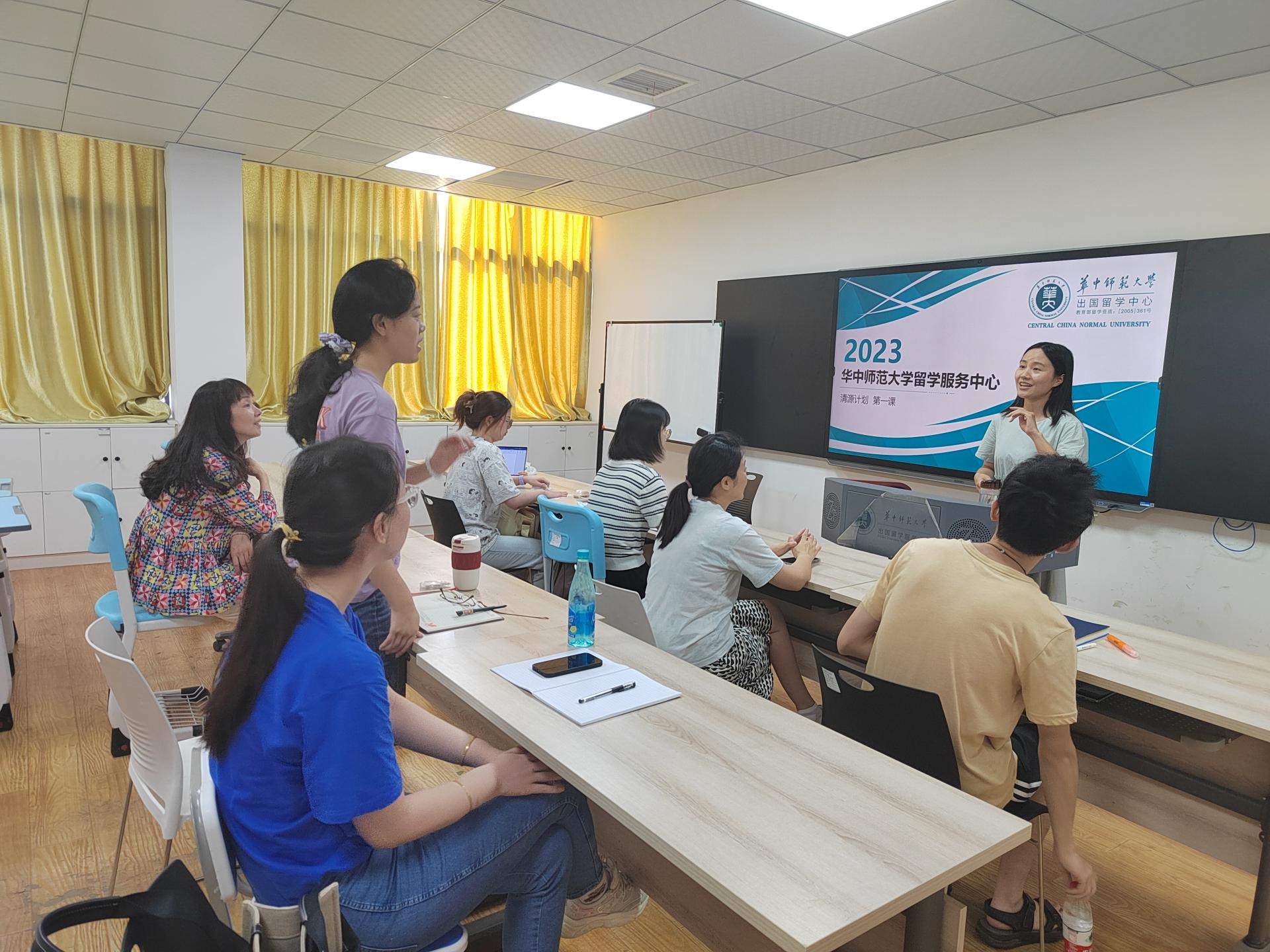 本期学员大多是来自华师化学、物理、英语等专业的研究生,及2名高年级本科生,他们拥有扎实的学科知识基础,并经历过专业的教师能力培训,但对国际教育还不甚了解。所以,培训的第一节课,课程中心的升学老师余梦婷就出国留学的脉络和流程进行了介绍。