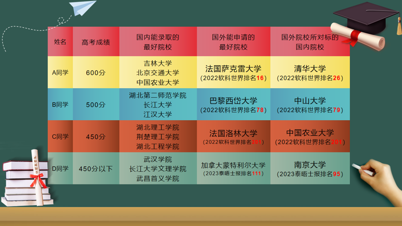 同样的高考分数,对于国内升学和出国深造,所能拿到的院校录取相去甚远。你的高考分数,值得选择更好的学校。法语名校联合培养项目十大优势为你保驾护航。